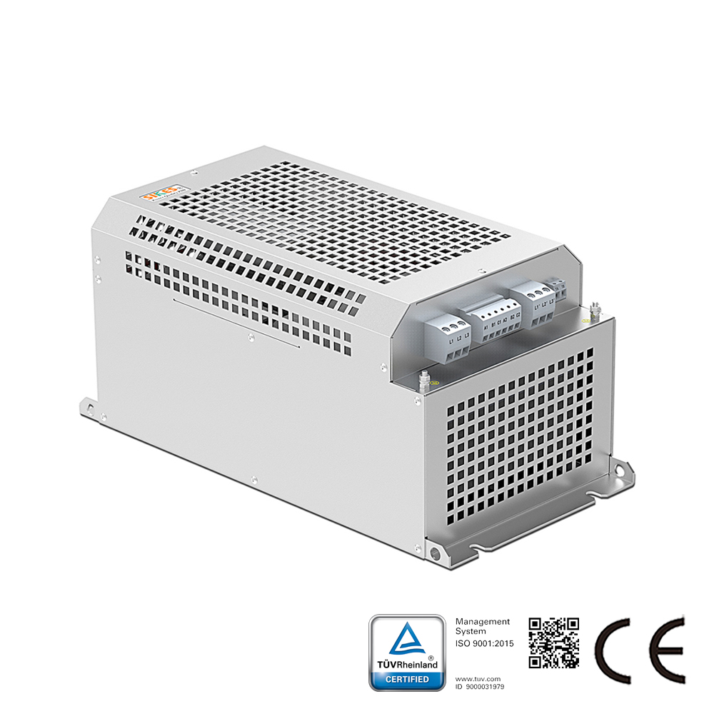 Als eigenständige Komponenten verfügen die fortschrittlichen Oberschwingungsfilter über ein kompaktes Gehäuse, das einfach in vorhandene Schaltschrankbereiche integriert werden kann. Dadurch eignen sie sich besonders für Nachrüstapplikationen mit minimalen Anpassungen am Frequenzumrichter.