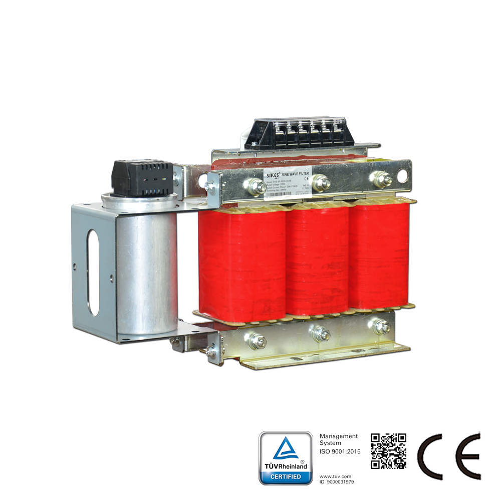 Sikes Sinuswellenfilter für verschiedene Servomotoren in Drehzahlregelsystemen (insbesondere für Frequenzumrichter oder Schaltnetzteile) sind dafür ausgelegt, die PWM-Ausgangsspannung des Umrichters zu verändern und eine nahezu sinusförmige Spannung zu erzeugen. Die passive Serie ist für den Einsatz in 380V-480V-Netzen vorgesehen.
