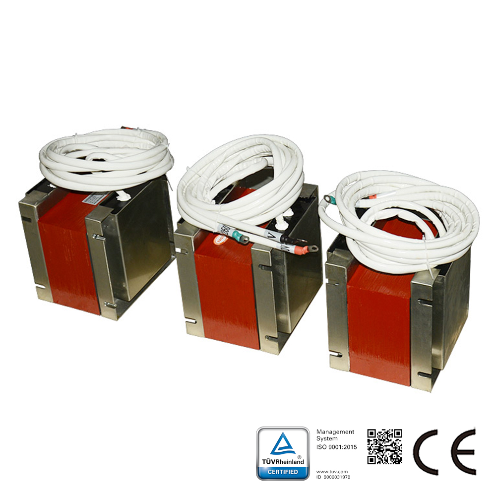 Der Kern des wasserdichten Spartransformators wird aus hochwertigem kaltgewalztem Siliziumstahlblech durch Stanzen und Stapeln gefertigt, was eine hohe Zuverlässigkeit, ein geringes Volumen, ein niedriges Gewicht und einen angemessenen Preis gewährleistet. Die Wicklungen bestehen aus hochleistungsfähigen, temperaturbeständigen und isolierenden Materialien, die mit dem Skelettwickelverfahren kombiniert werden, wodurch sie eine hohe elektromagnetische Belastbarkeit, eine saubere Verarbeitung und ein ansprechendes Aussehen aufweisen. Je nach Isolationsklasse wird das gesamte Bauteil mit Isolierlack unterschiedlicher Klassen imprägniert, was effektiv die Transformatorgeräusche reduziert, die Streuung des Magnetfelds verringert, eine stabile Leistung gewährleistet und die Auswirkungen von Salznebel, Schimmel usw. auf den Transformator minimiert. Die Wicklungen werden vollständig vergossen, sodass der Transformator über längere Zeit unter Wasser betrieben werden kann.