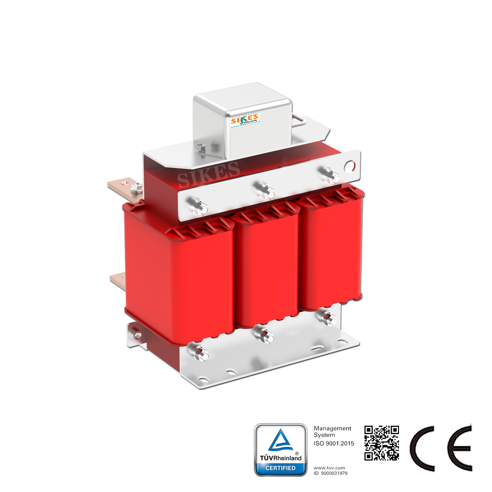 Die SIKES DV/DT-Filter verringern die Isolationsbelastung von Motoren durch Absenkung des dU/dt-Wertes der Ausgangsspannung des Frequenzumrichters. Je nach Modell können sie bei Kabellängen von bis zu 100 bis 300 m eingesetzt werden.