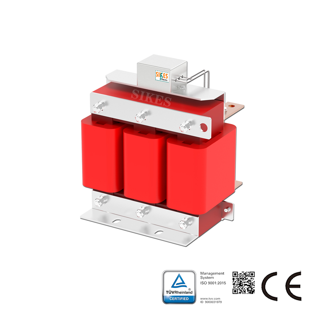 Die SIKES DV/DT-Filter verringern die Isolationsbelastung von Motoren durch Absenkung des dU/dt-Wertes der Ausgangsspannung des Frequenzumrichters. Je nach Modell können sie bei Kabellängen von bis zu 100 bis 300 m eingesetzt werden.