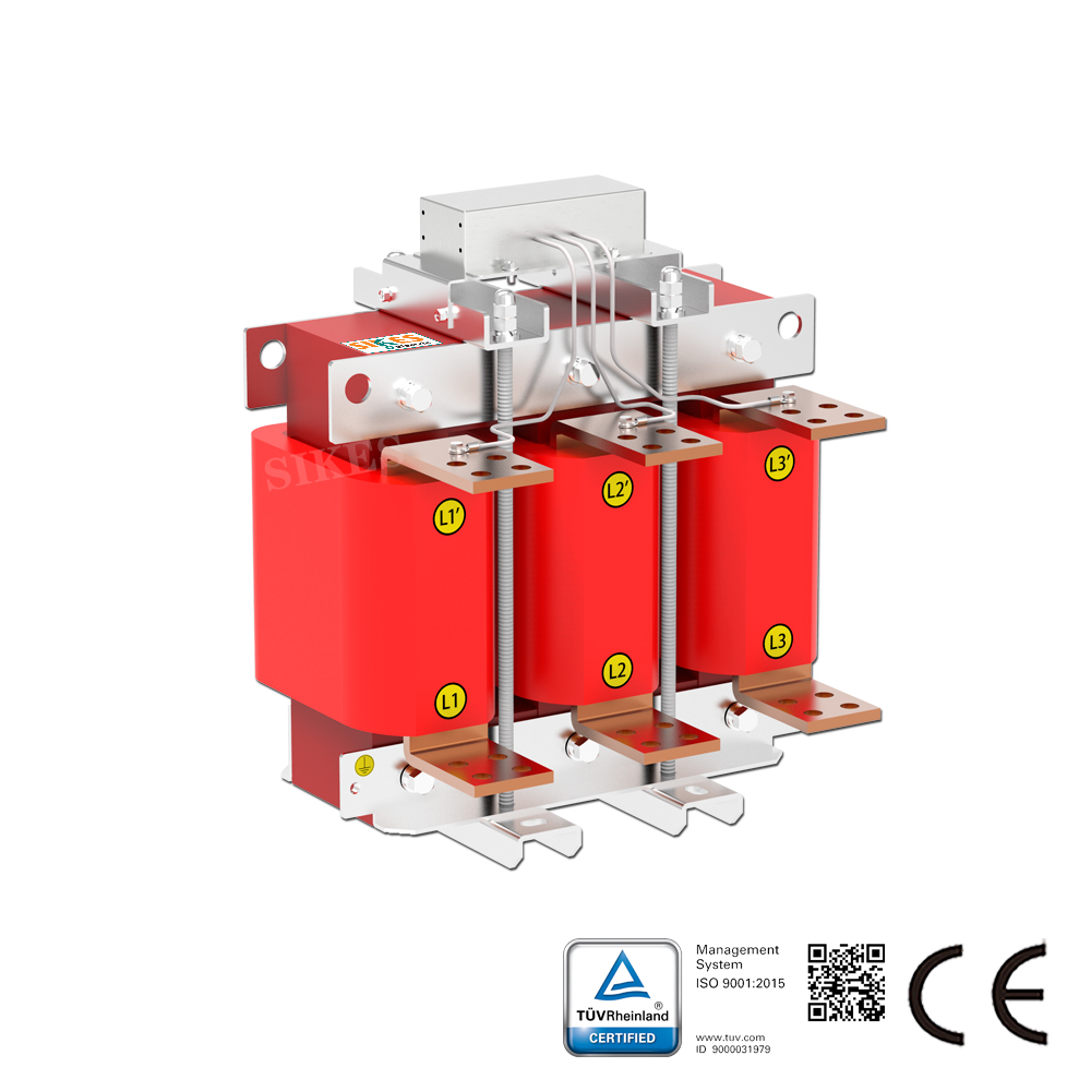 Die SIKES DV/DT-Filter verringern die Isolationsbelastung von Motoren durch Absenkung des dU/dt-Wertes der Ausgangsspannung des Frequenzumrichters. Je nach Modell können sie bei Kabellängen von bis zu 100 bis 300 m eingesetzt werden.