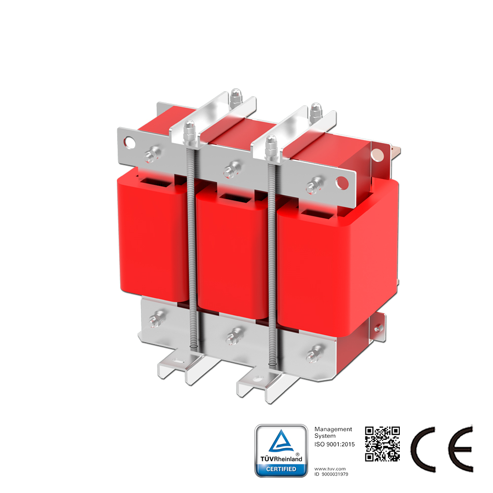 Beschreibung des Lastdrosselspulen: Die SKS-OCL-Serie Lastdrosselspulen werden in Reihe mit elektrischen Betriebsmitteln geschaltet, um einen spezifischen, gesteuerten Widerstand in den Wechselstromkreis einzubringen. Diese Serie wird auf der Ausgangsseite von Frequenzumrichtern eingesetzt, um Einschaltspannungen zu unterdrücken, Einschalt- und Spitzenströme zu reduzieren, den Wirkleistungsfaktor zu verbessern, Netzoberschwingungen zu begrenzen und die Ausgangsstromkurvenform zu optimieren. Lastdrosselspulen werden auch als Ausgangsdrosselspulen bezeichnet.