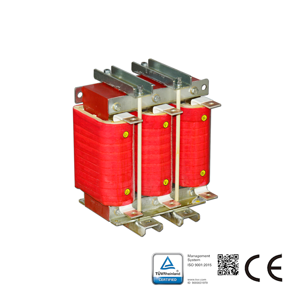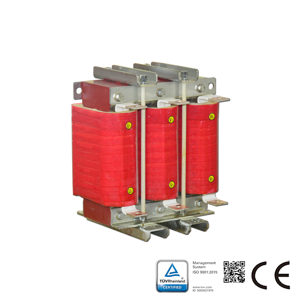 Beschreibung des Lastdrosselspulen: Die SKS-OCL-Serie Lastdrosselspulen werden in Reihe mit elektrischen Betriebsmitteln geschaltet, um einen spezifischen, gesteuerten Widerstand in den Wechselstromkreis einzubringen. Diese Serie wird auf der Ausgangsseite von Frequenzumrichtern eingesetzt, um Einschaltspannungen zu unterdrücken, Einschalt- und Spitzenströme zu reduzieren, den Wirkleistungsfaktor zu verbessern, Netzoberschwingungen zu begrenzen und die Ausgangsstromkurvenform zu optimieren. Lastdrosselspulen werden auch als Ausgangsdrosselspulen bezeichnet.